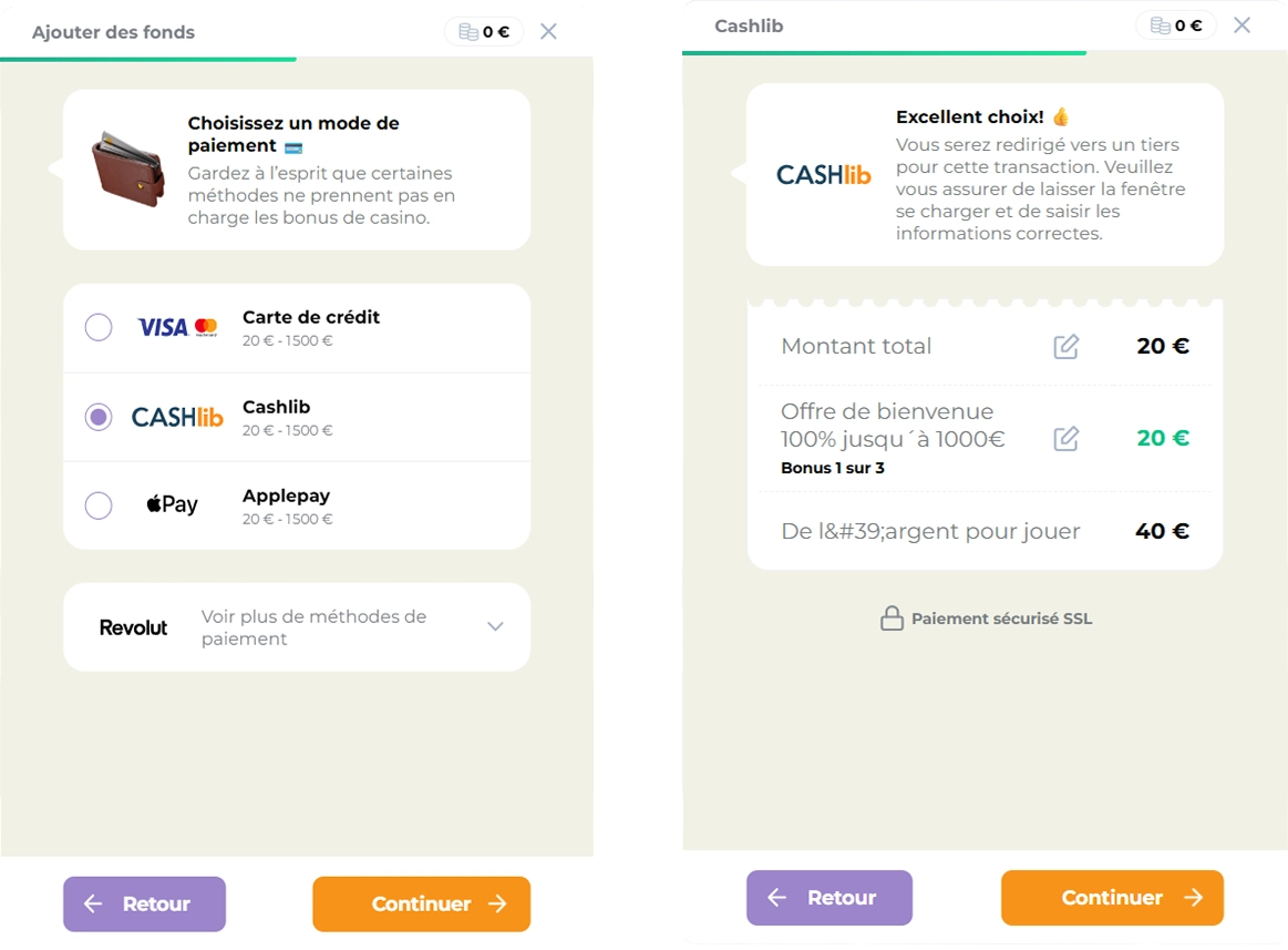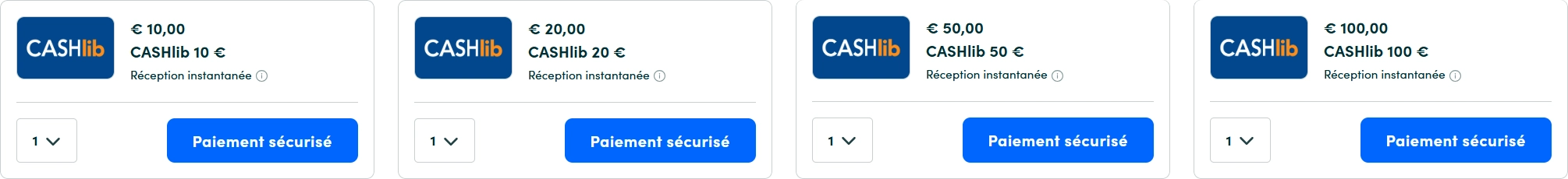 Important: Un coupon Cashlib ne peut être utilisé qu’une seule fois. Si tu n’utilises pas la totalité, le reste est perdu. Pense à l’ajuster à ton budget.