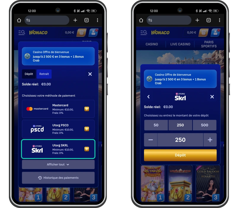 Ce que j’ai remarqué en premier chez Wonaco? Leur générosité. Le bonus premier dépôt via Skrill était plus élevé que via carte bancaire. Et le système de cashback est activable même si tu joues avec de petites mises. L’idéal pour tester sans pression.